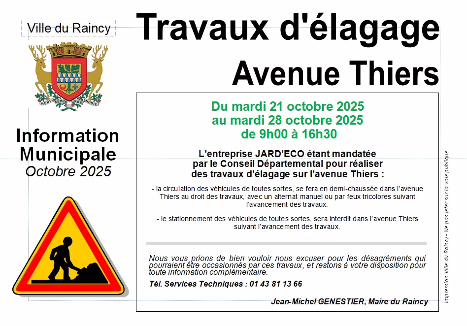 L’entreprise JARD’ECO étant mandatée par le Conseil Départemental pour réaliser des travaux d’élagage sur l’avenue Thiers: