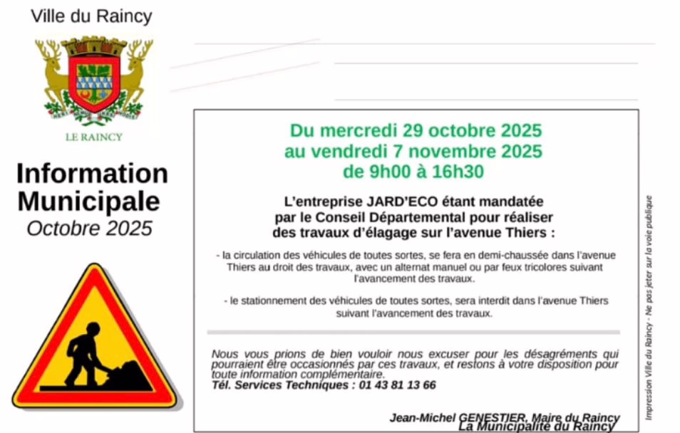 L’entreprise JARD’ECO étant mandatée par le Conseil Départemental pour réaliser des travaux d’élagage sur l’avenue Thiers :