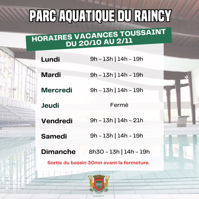 Horaires vacances de la Toussaint 2025