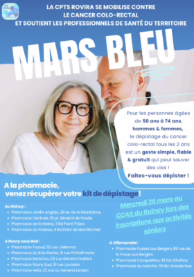 Dans le cadre de Mars Bleu, la CPTS ROVIRA se mobilise contre le cancer colo-rectal et soutient les professionnels de santé du territoire.